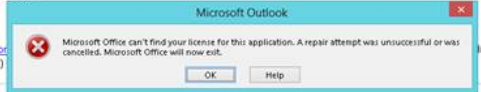 microsoft office can’t find your license for this application. A repair attempt was unsuccessful or was cancelled. microsoft office will now exit