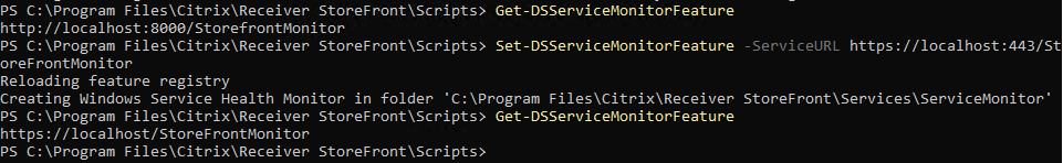 Set-DSServiceMonitorFeature -ServiceURL https://localhost:443/StoreFrontMonitor