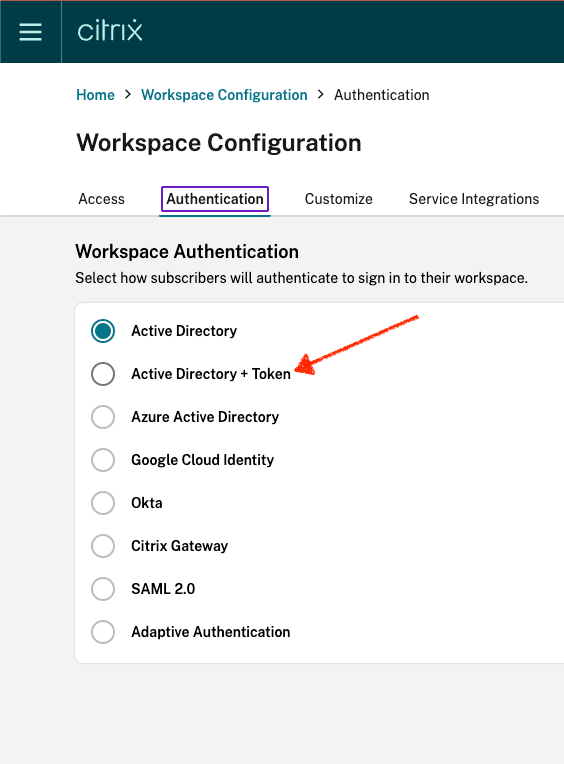 Now you will need to head over to the Workspace Configuration as below. This is where you enable 2 factor for your subscribers consuming apps and desktops