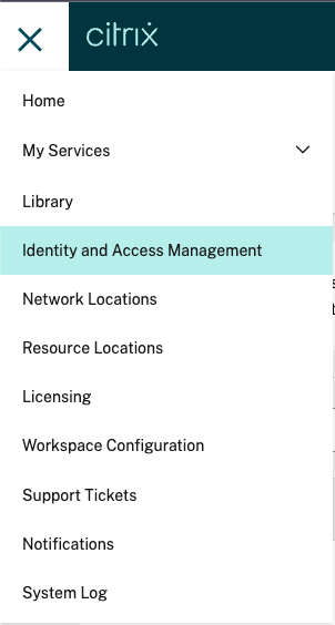 Login to your Citrix Cloud tenancy first and click on the Hamburger icon on the top right. You will see the below drop down